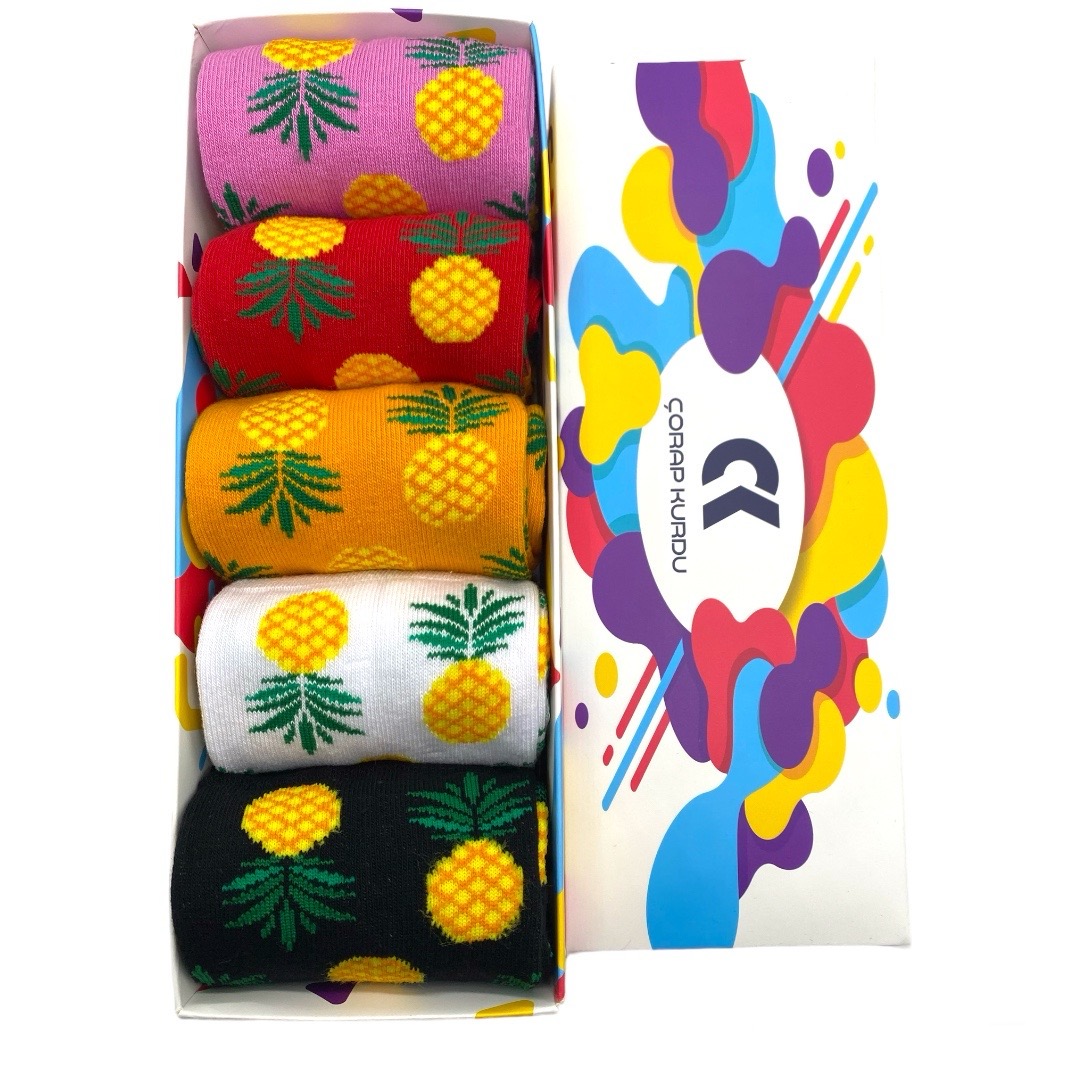 5’li Ananas Desenli Renkli Soket Çorap Set
