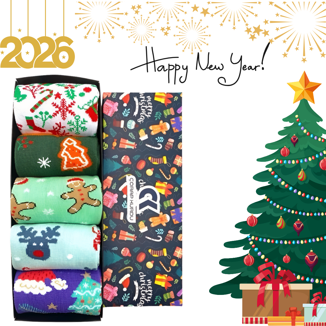 5’li Yılbaşı Özel Kutulu Unısex Soket Çorap Set